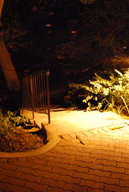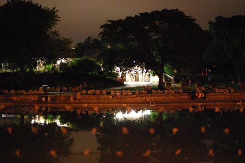 Naperville Riverwalk at night, 7-23-11. Image by J. Porys.