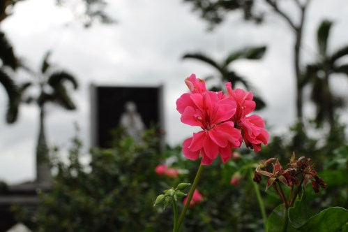 Palm trees and vibrant colored flowers are Maui standards. This photo was taken in front of a church. Image by J. Porys.