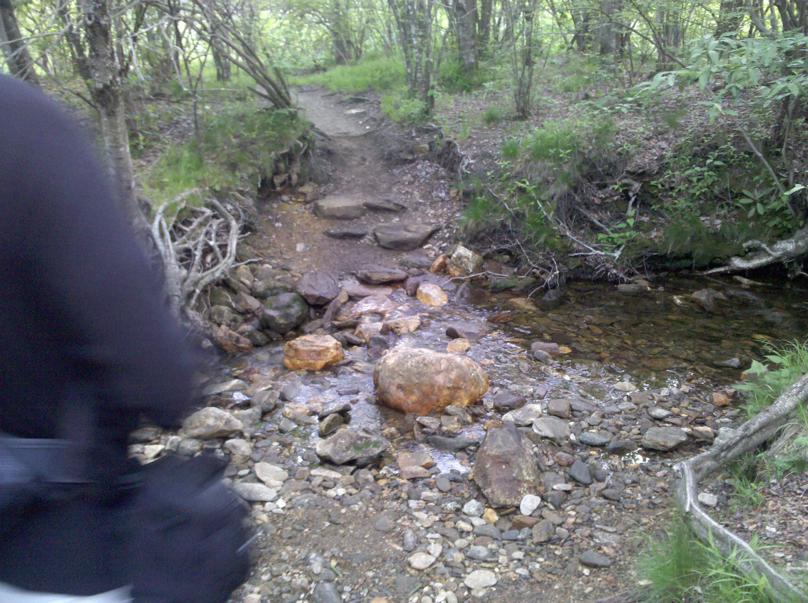 My hiking poles came in handy as we crossed this stream! Image by Sue Shekut