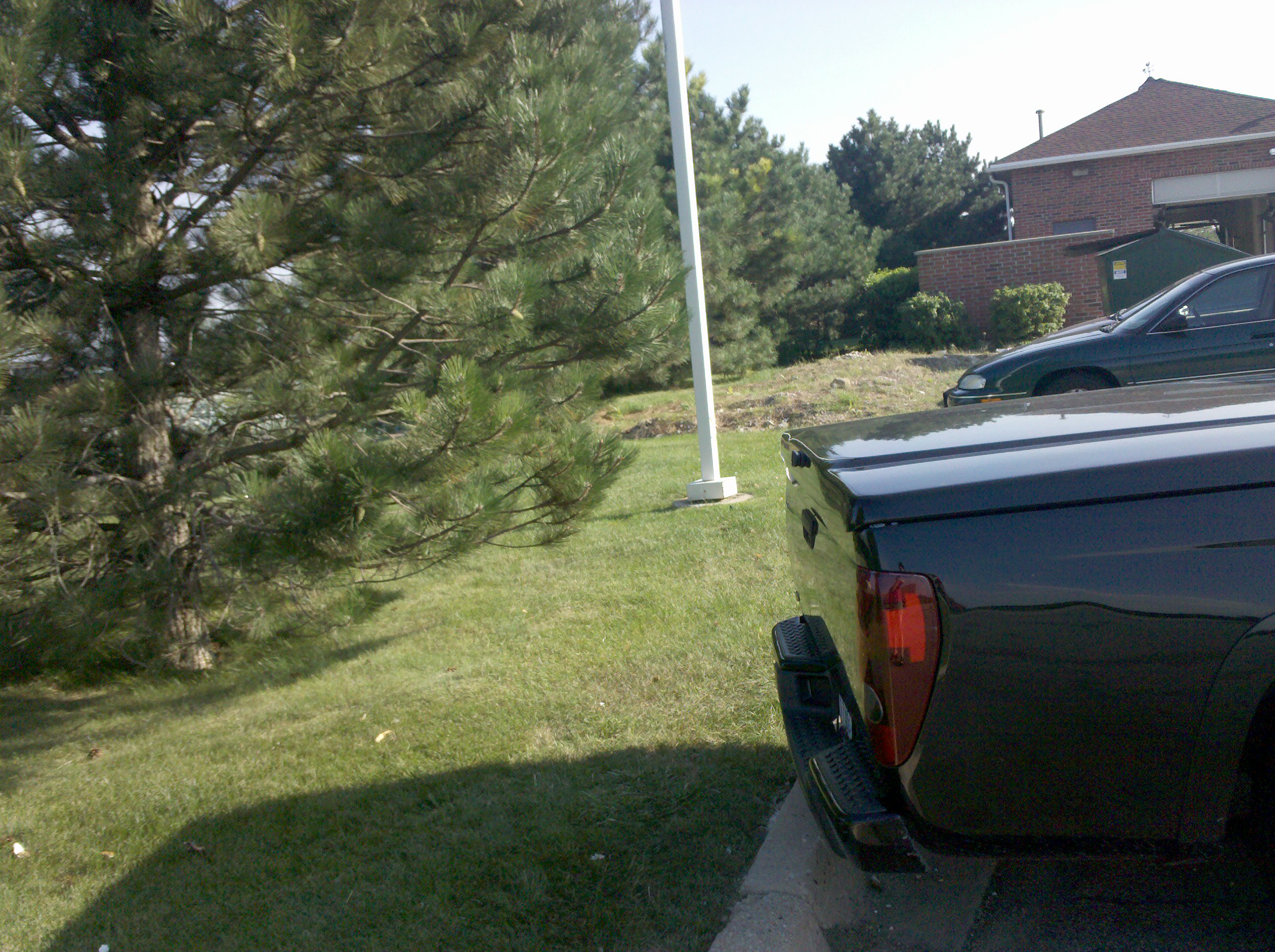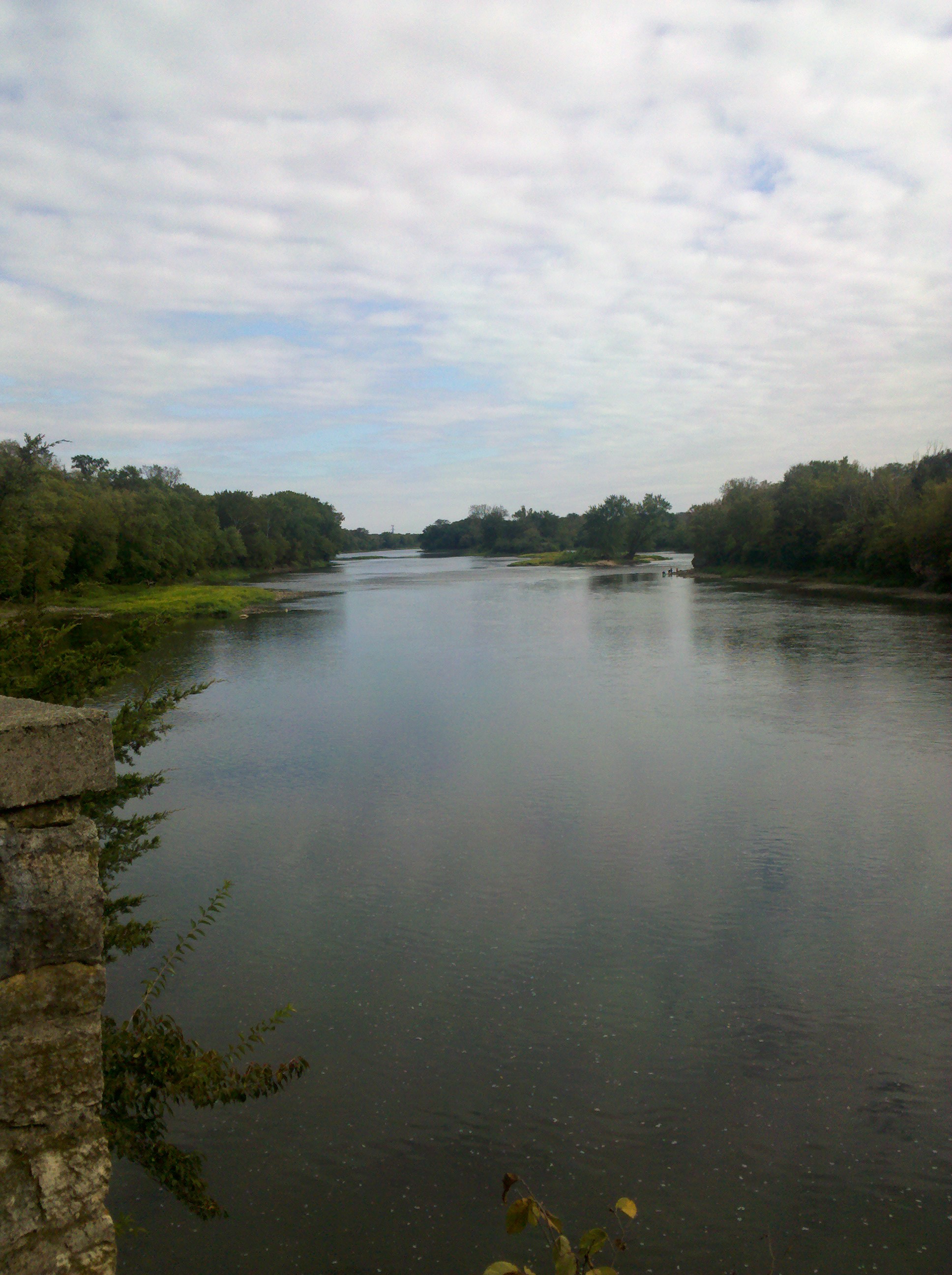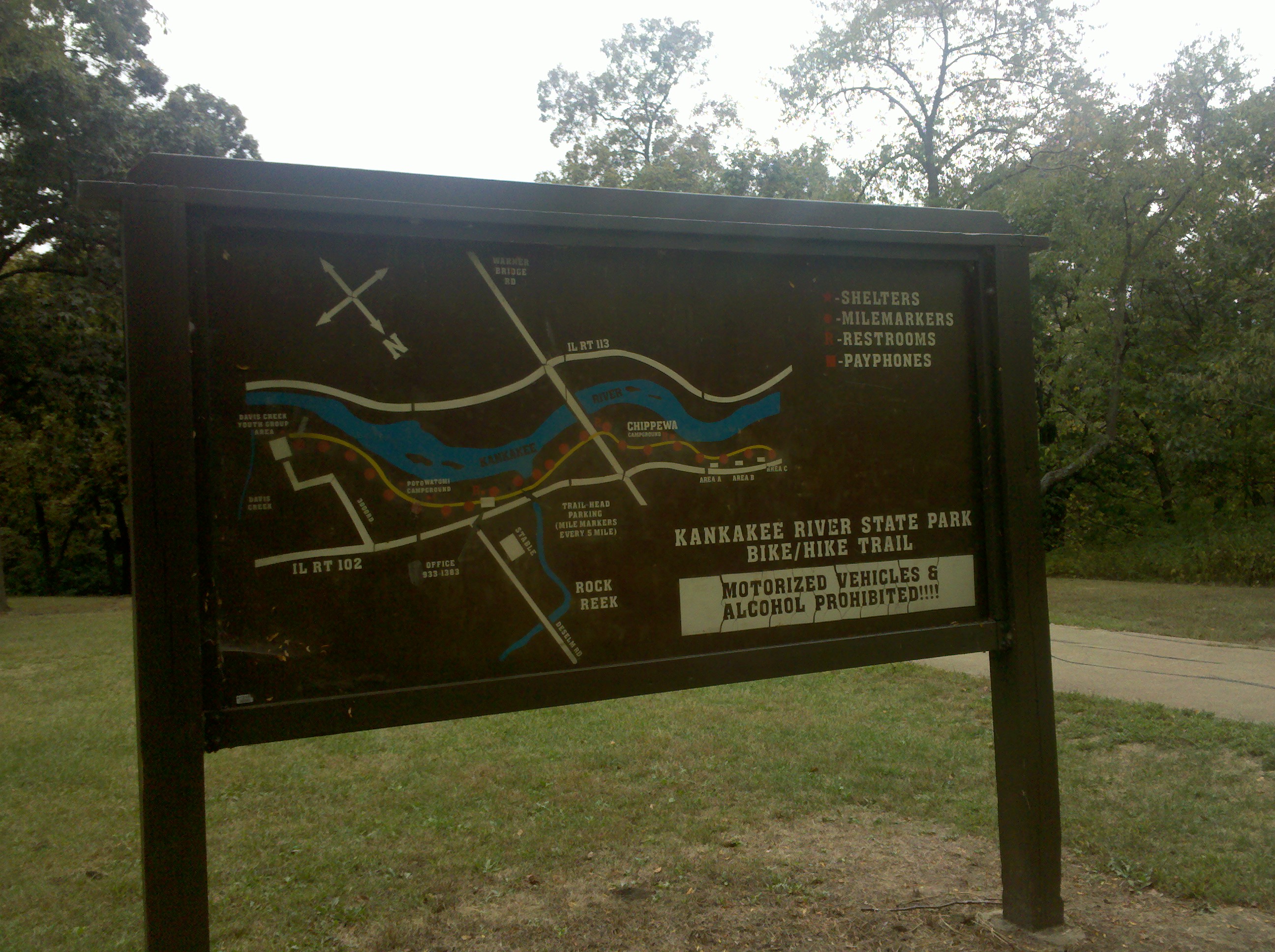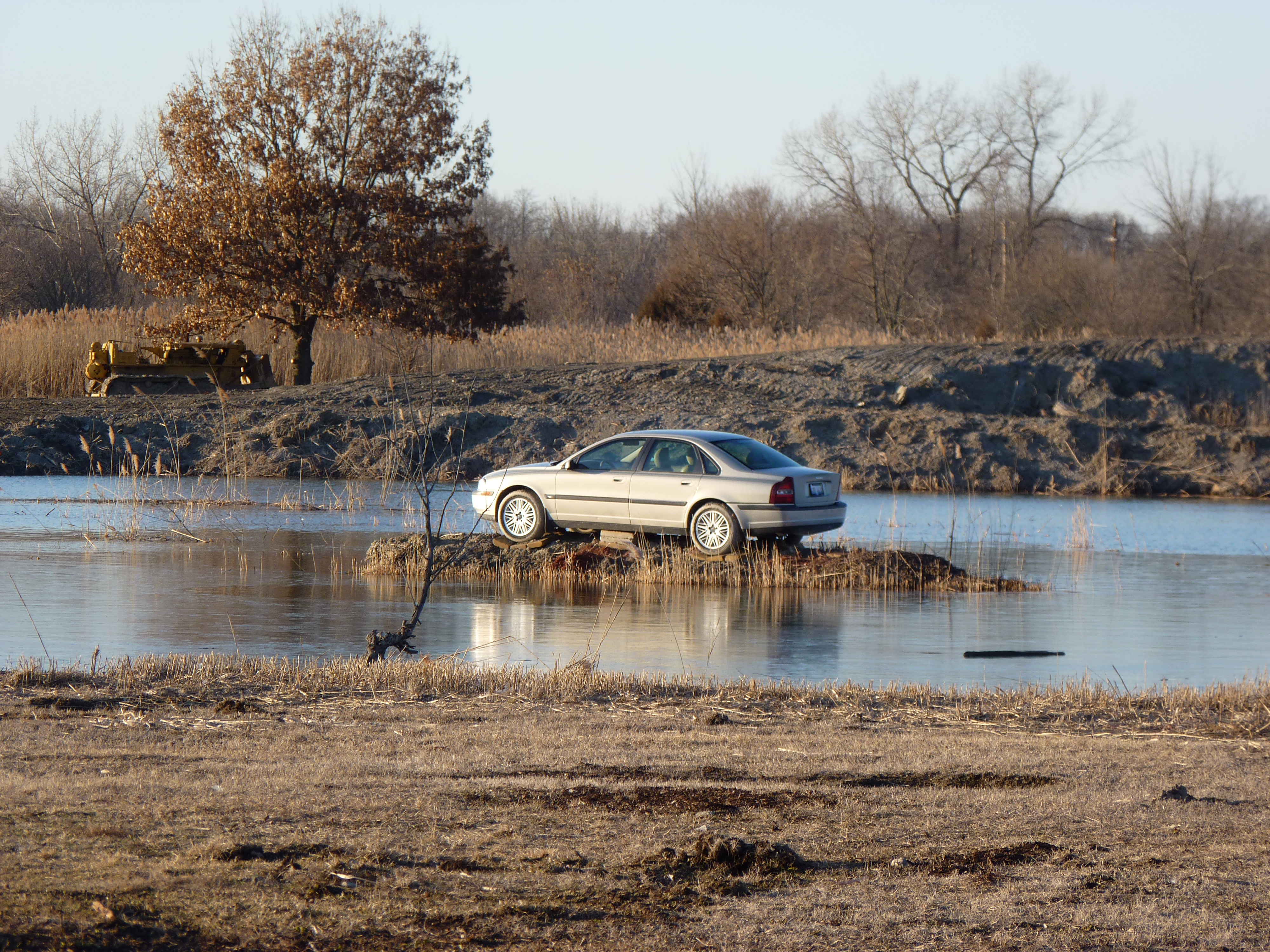 Outside of the state park near Ottawa, we saw this car and wondered how what distracted the driver enough to miss the road–and dry land–so entirely! Image by Sue Shekut