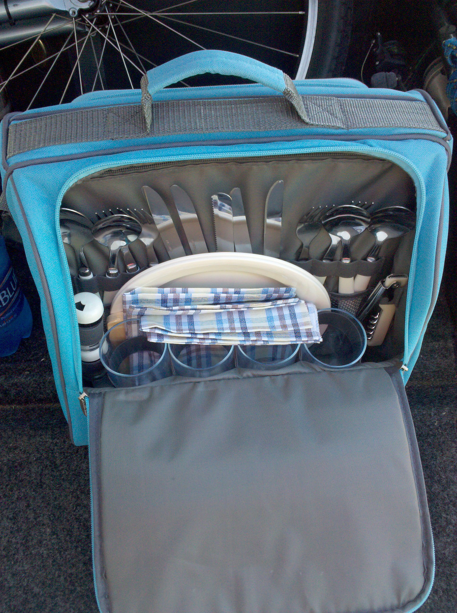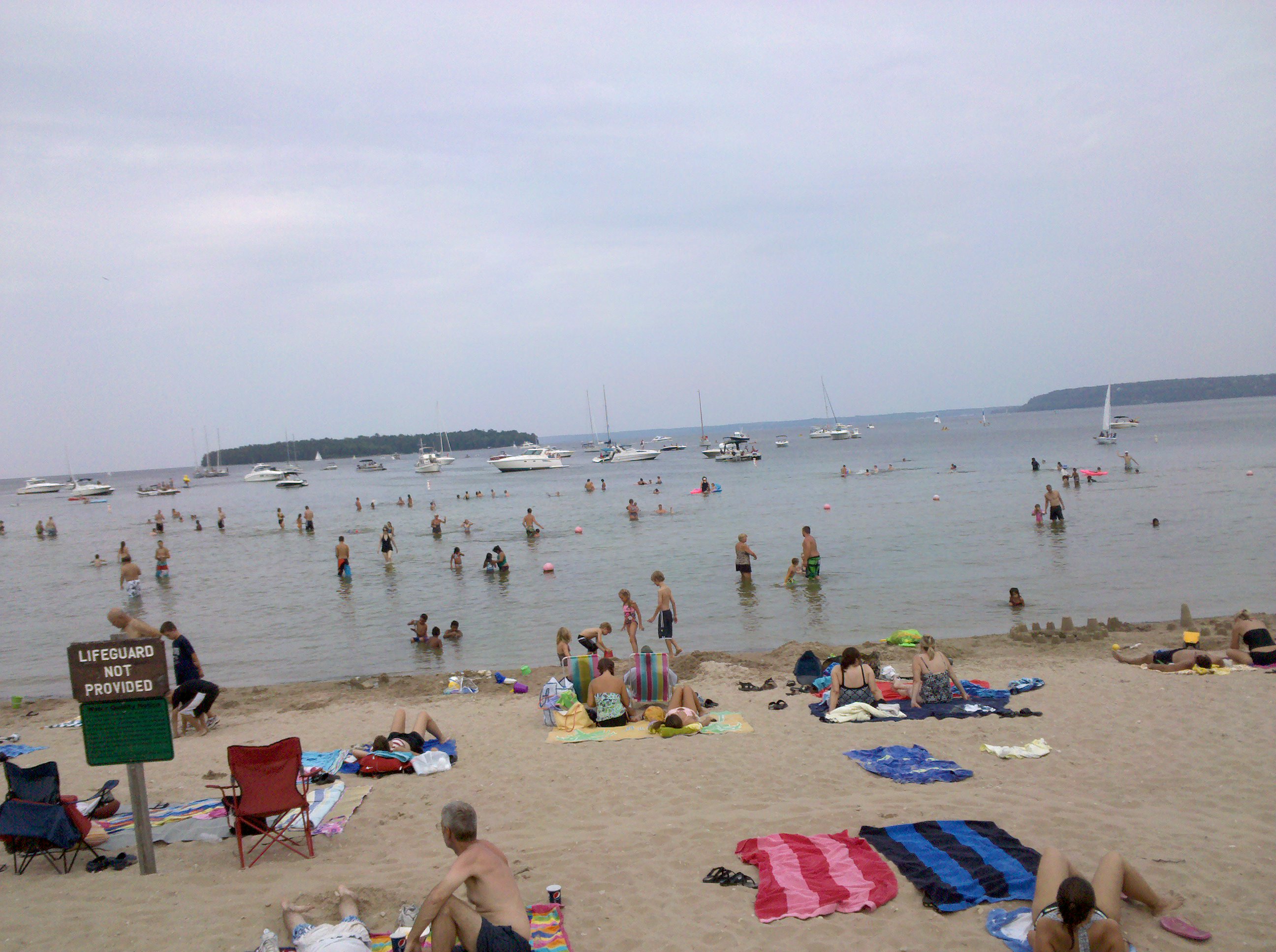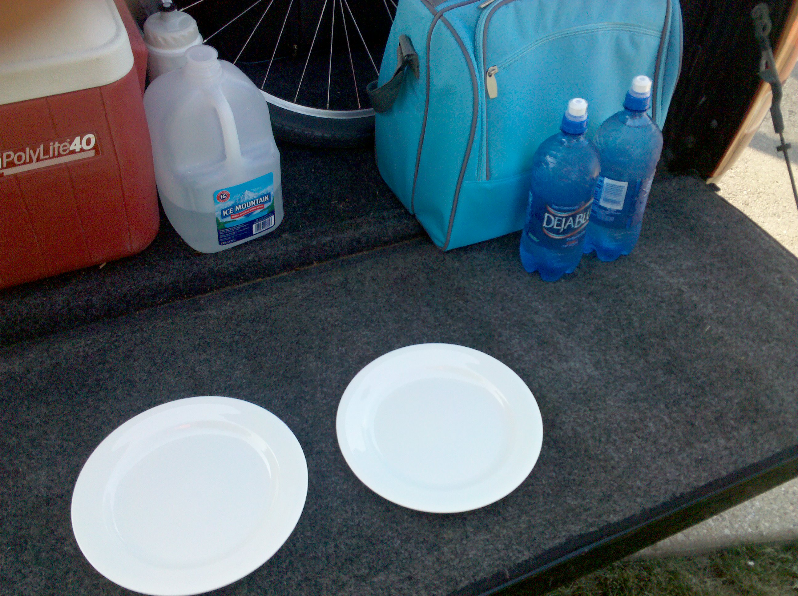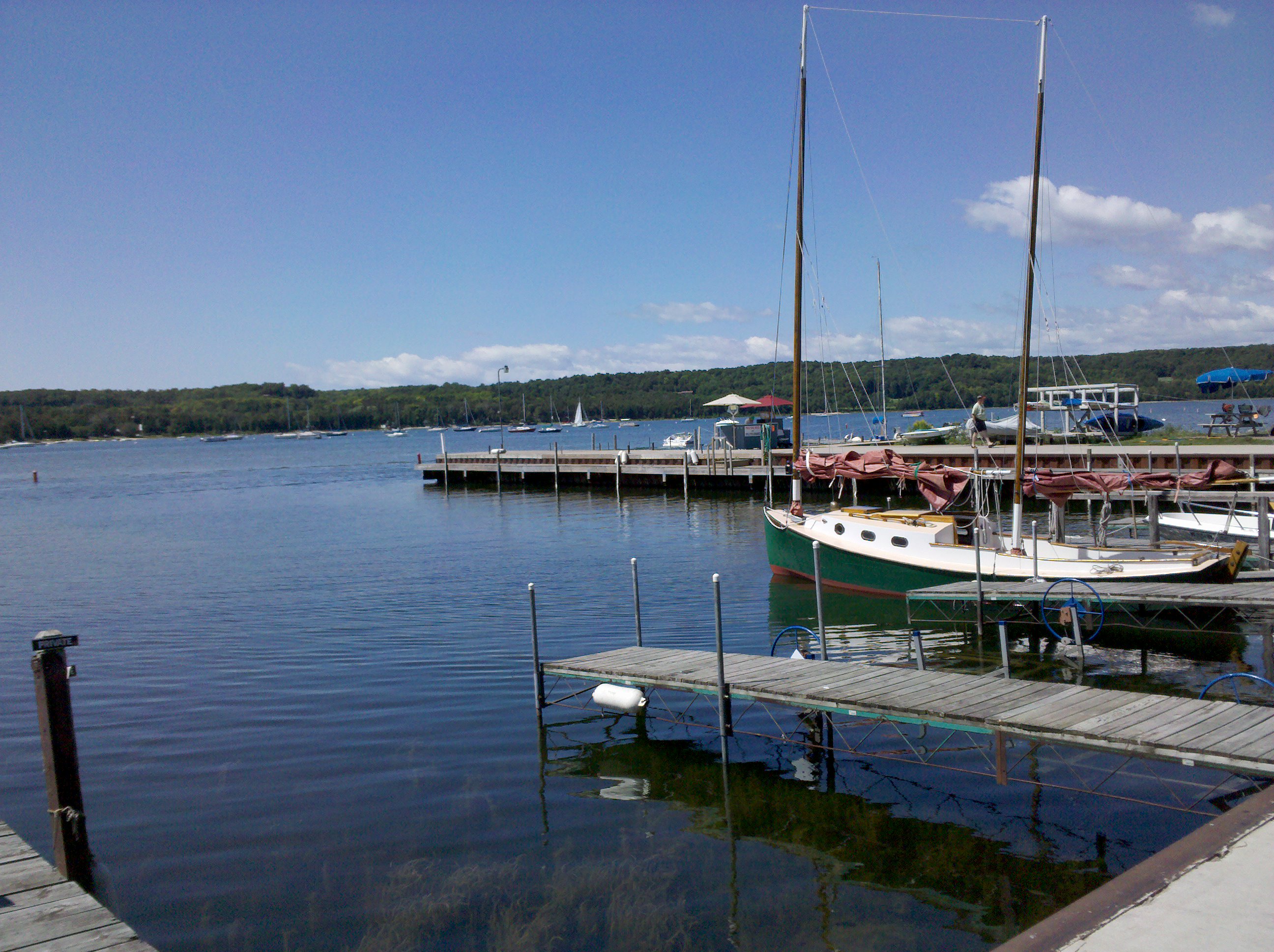 Outside of the state park near Ottawa, we saw this car and wondered how what distracted the driver enough to miss the road–and dry land–so entirely! Image by Sue Shekut