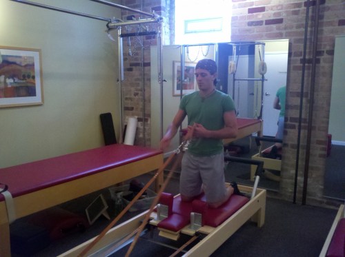 Jacob Greathouse demonstrates every move he expects me to do which greatly helps me understand where to position my body in a Pilates exercise.