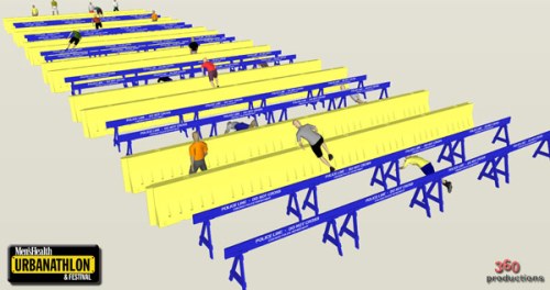 What’s so cool about the URBANATHLON™? It’s all set up in downtown Chicago lakefront areas and consists of fitness challenges for men and woman that want to do more than run on pavement for 26 plus miles. Not to bash the Marathon, but some people want more than a running race. They want a climbing, jumping, sprinting and crawling race.