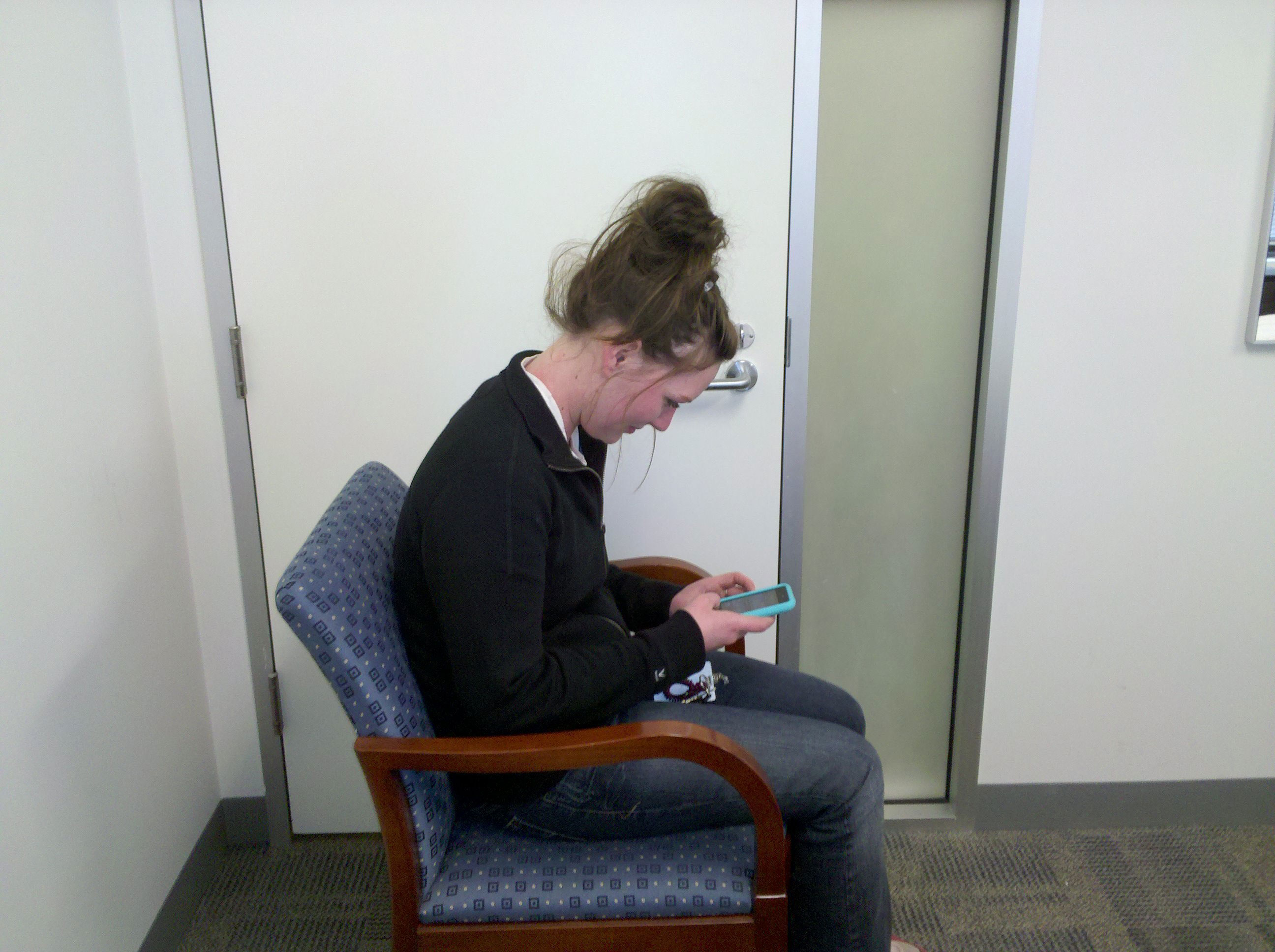 Are you semi-seated (similar to sitting on a bar stool) or do you sit straight up? Do you need to adjust your chair? Where is your computer in relation to your body?